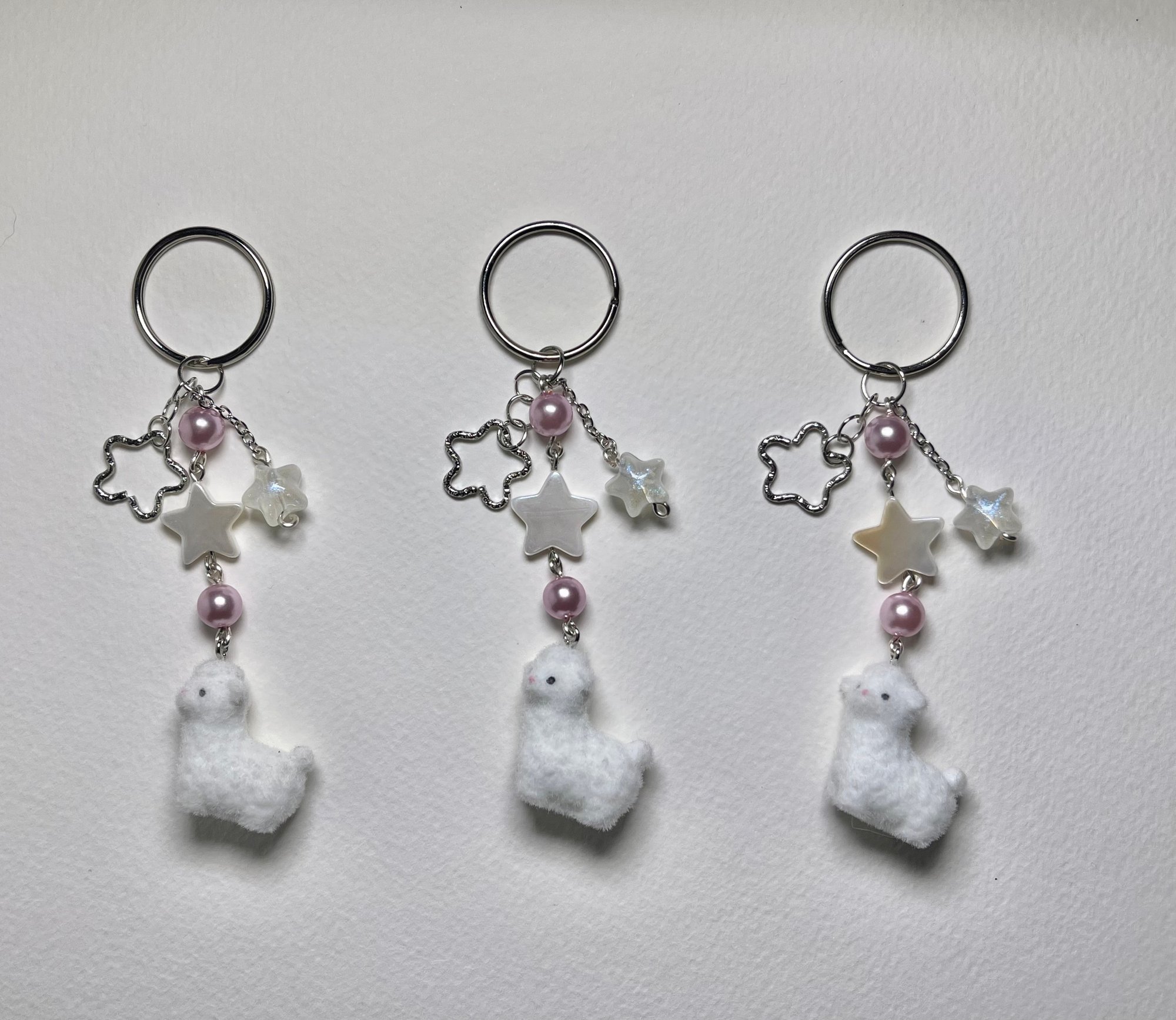 this adorable keychain features a super soft, fluffy white lamb, dreamy pastel beads, and sparkling star charms. It’s perfect for adding a little magic and cuteness to your keys, backpack, or purse!